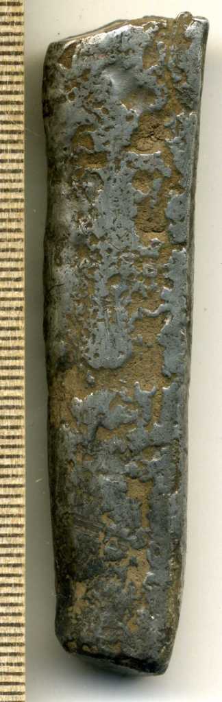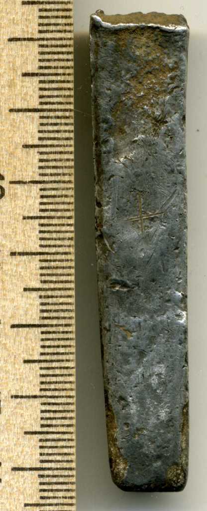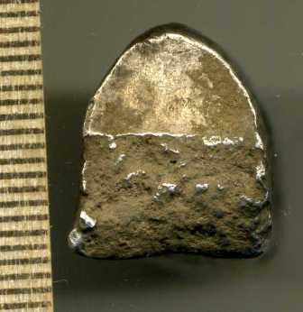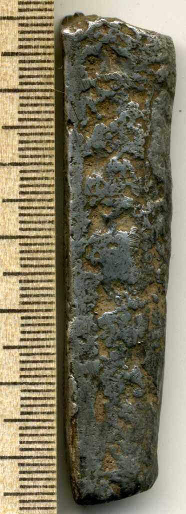 З.Ы. Для справки, половина гривны это ещё не полтина. Вот если бы на срезе было клеймо, то это можно было бы назвать полтиной. Когда мастер делил гривны пополам, он клеймом своим подтверждал правильность деления, в весе мол не ошибся. А это просто половинка гривны, встречаютсся и меньшие фрагменты.