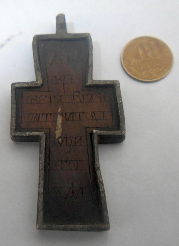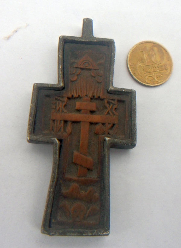 Вот решился вынут из окантовки, аккуратно под микроскопом снял отслаивающуюся кусками слюду ,подчистил корпус просушил и подчистил деревянный крестик,собрал все обратно, сохран дерева из земли радует :a_g_a: