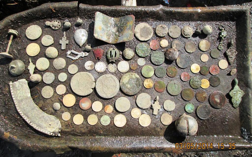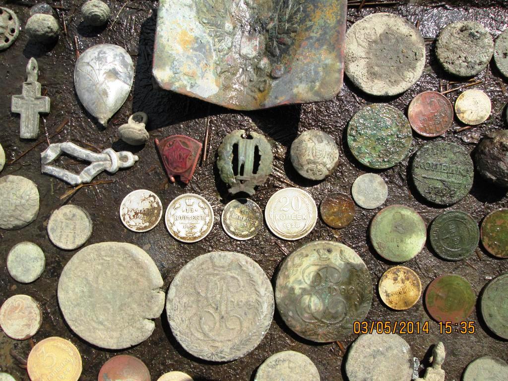 Вот итоги на фото. 100 монет на двоих,у меня 66, у напарника 34,ну и другие находки.Мои находки на фото с серебряшками.