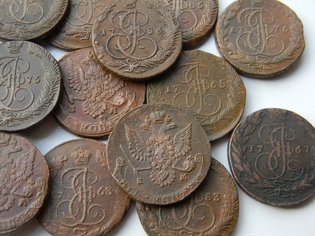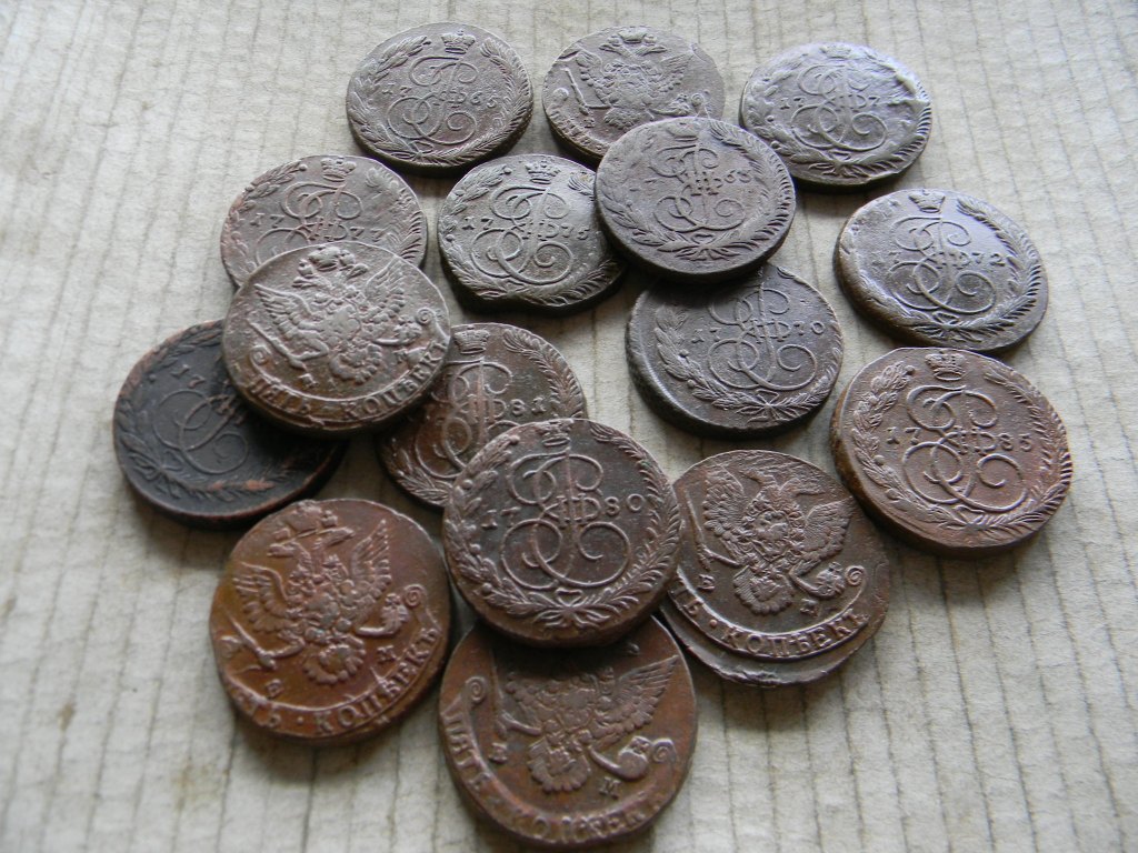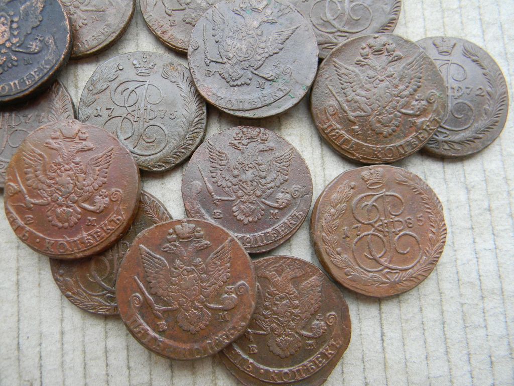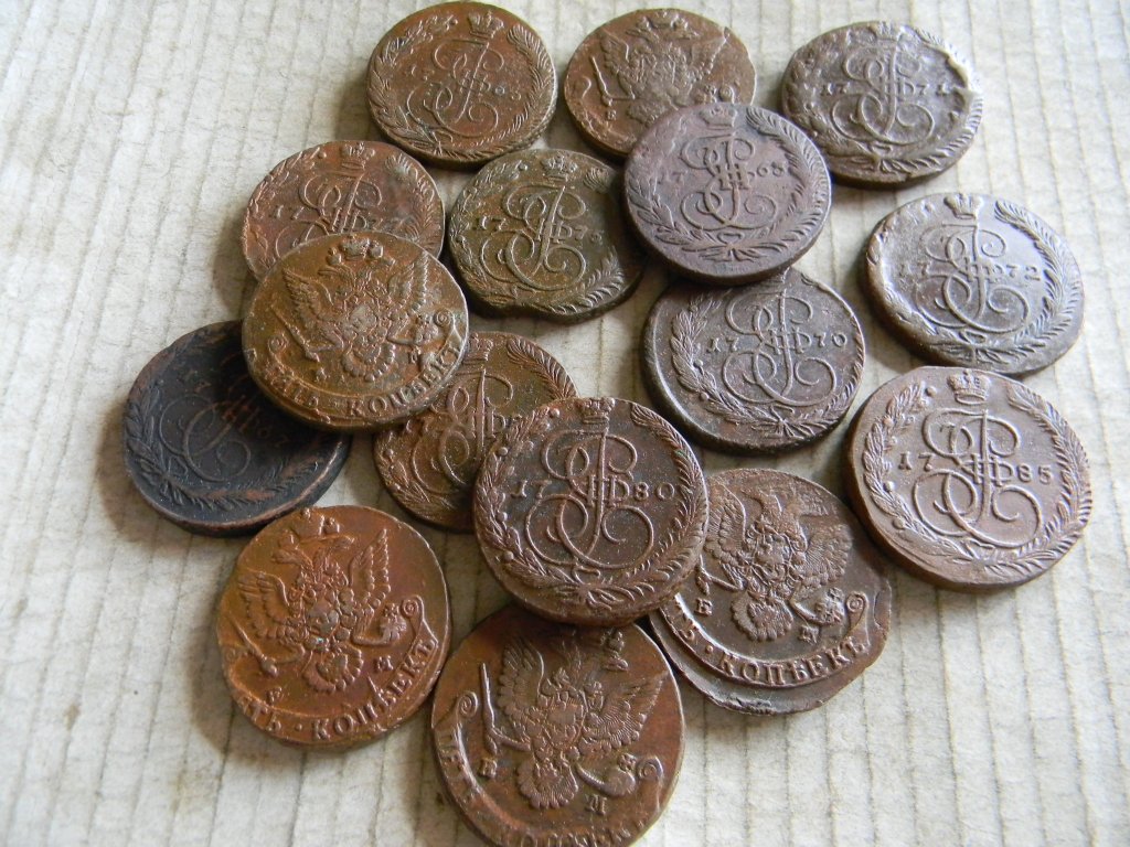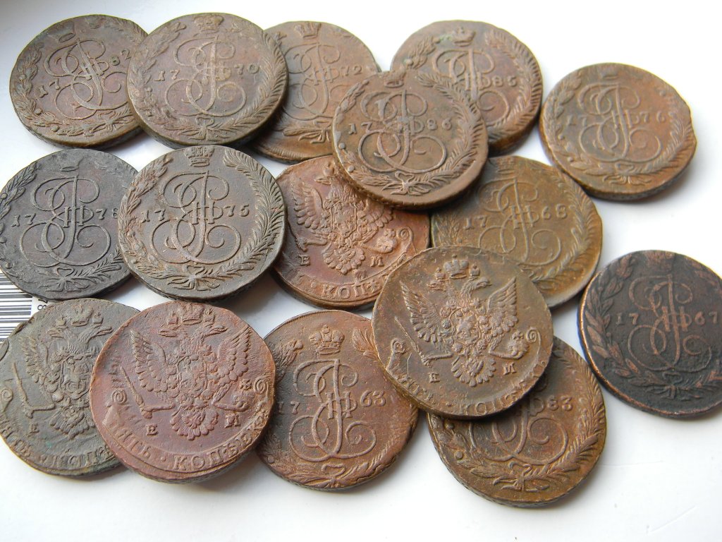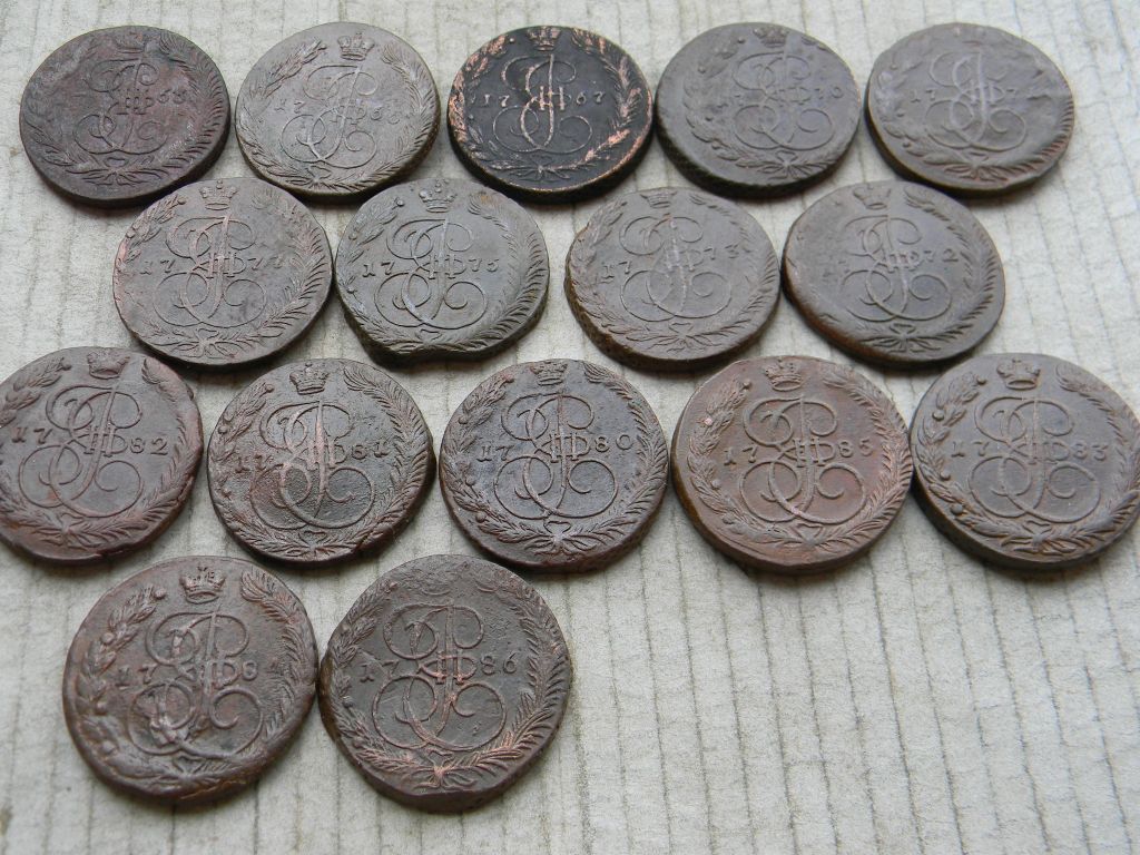 Предлагаю с пересылкой в любой город подборку из 16 пятаков Екатерины, все ЕМ, до 1786 года.