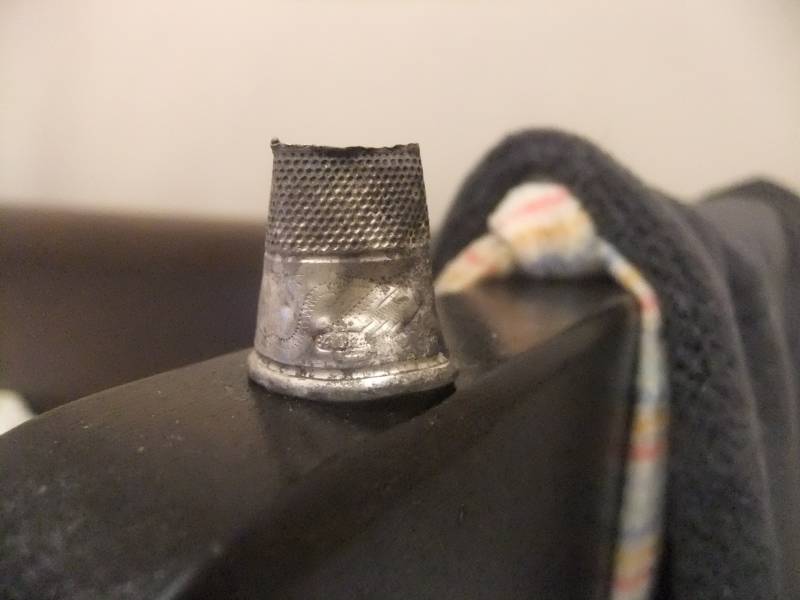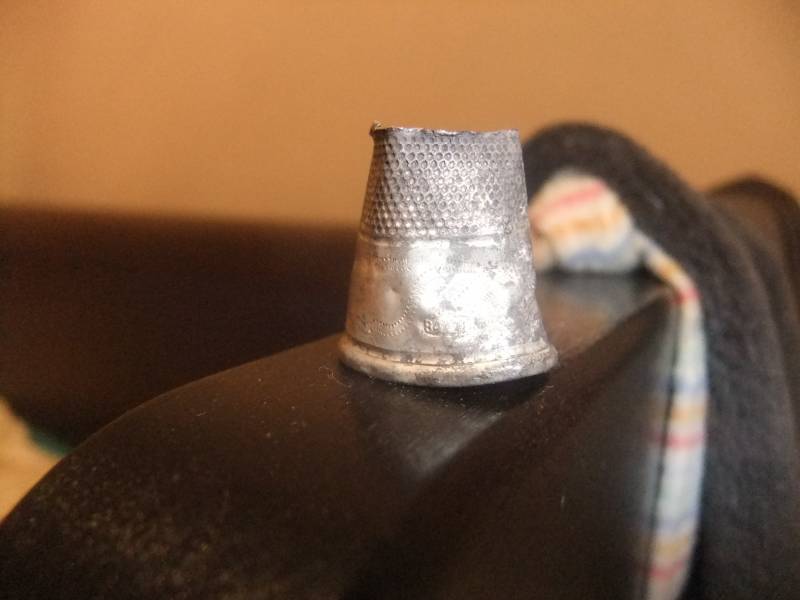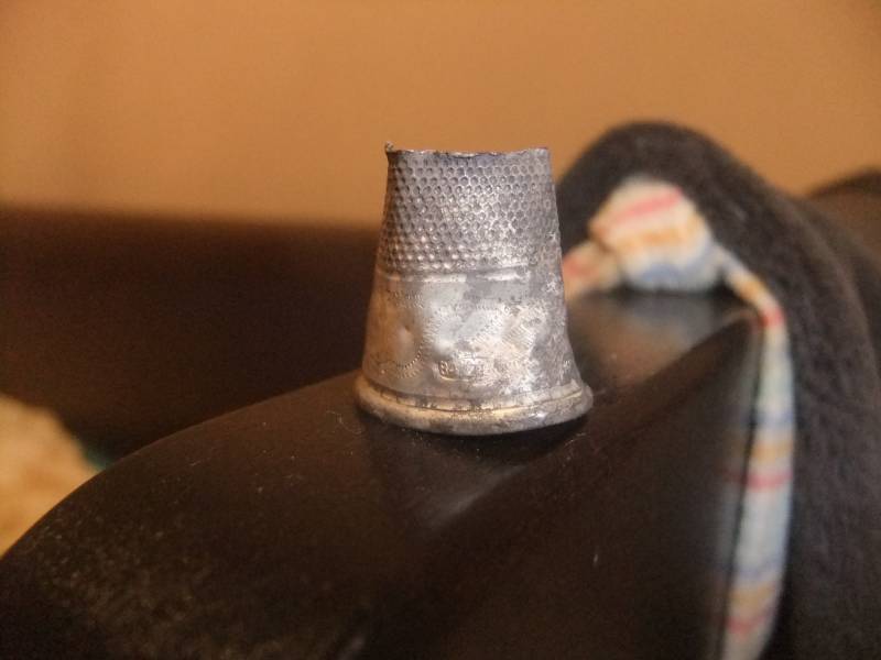 Попадался мне серебреный наперсток, с красным камушком на конце, практически целый, слегка помят был, я его выпрямил и подарил теще. Думаю что вещь достаточно распространенная.