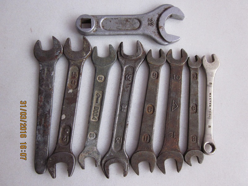 День добрый,перебрал ящик с инструментом,и оказалось много лишних гаечных ключей,все ключи в отличном состоянии,не разбиты.16 шт. цена 1 тыр.+ пересыл, бонус любой из ящика,кроме гаечных ключей,они на фото отдельно.